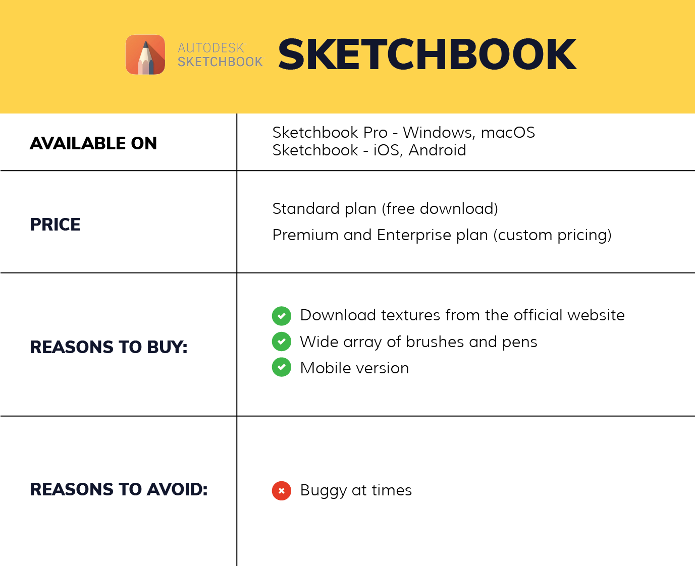 Sketchbook is a digital drawing and painting app developed by Autodesk. It's available for all platforms like Windows, MacOS, iOS, and Android. It has a free version as well.