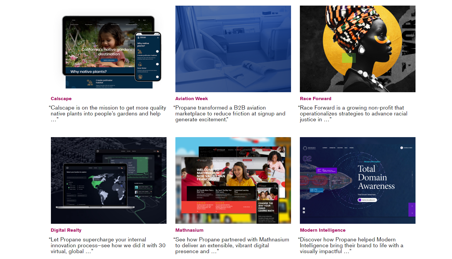 Propane is a San Francisco-based brand, UX, and platform consultancy agency that helps brands bring visions to life through creative strategies and design. They’ve been around since 2003, and have worked with some notable brands, including big car brands like Audi and Volkswagen.